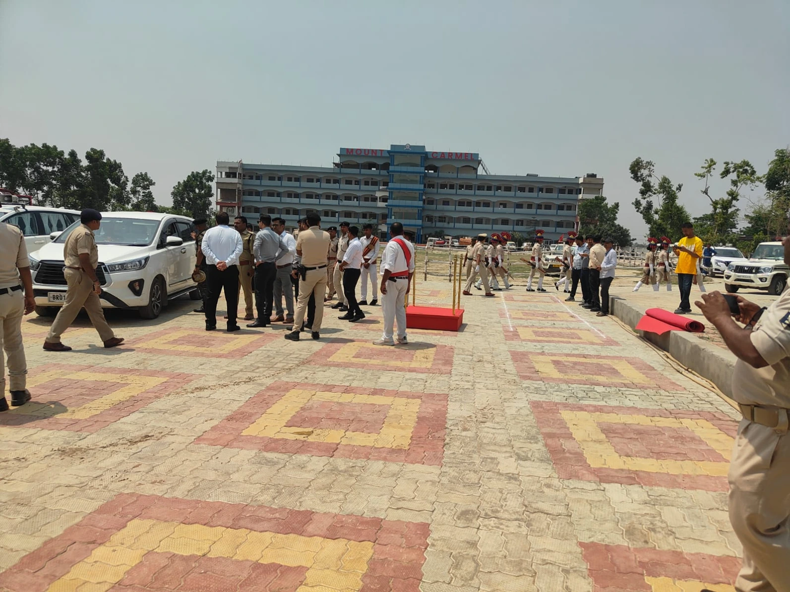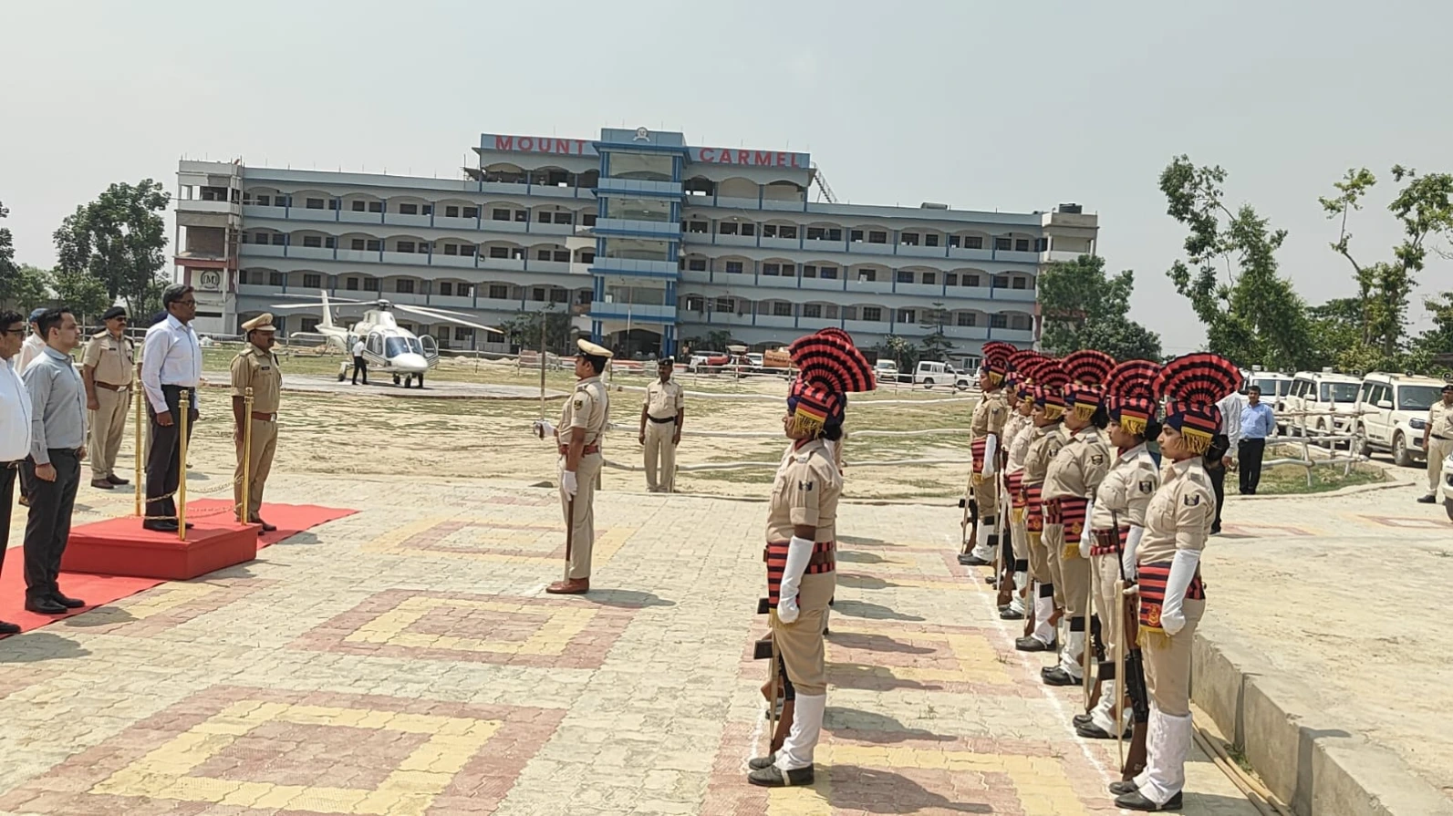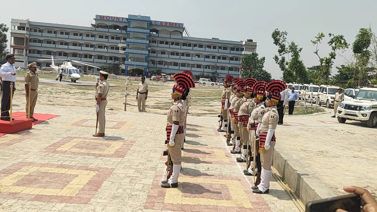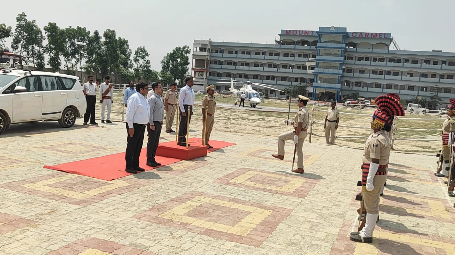 दोनों वरिष्ठ अधिकारी माउंट कारमेल स्कूल परिसर में हेलीकॉप्टर के माध्यम से उतरे, जहां पहले से मौजूद पुलिस और प्रशासनिक अधिकारियों ने उनका स्वागत किया। इस दौरान जवानों ने उन्हें गार्ड ऑफ ऑनर दिया, जिससे पूरे कार्यक्रम की गरिमा और बढ़ गई।
