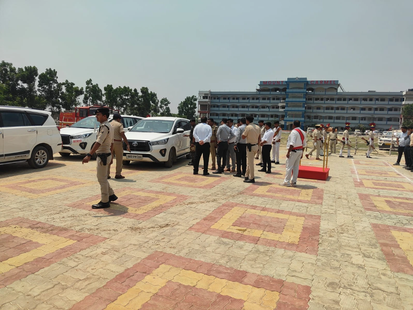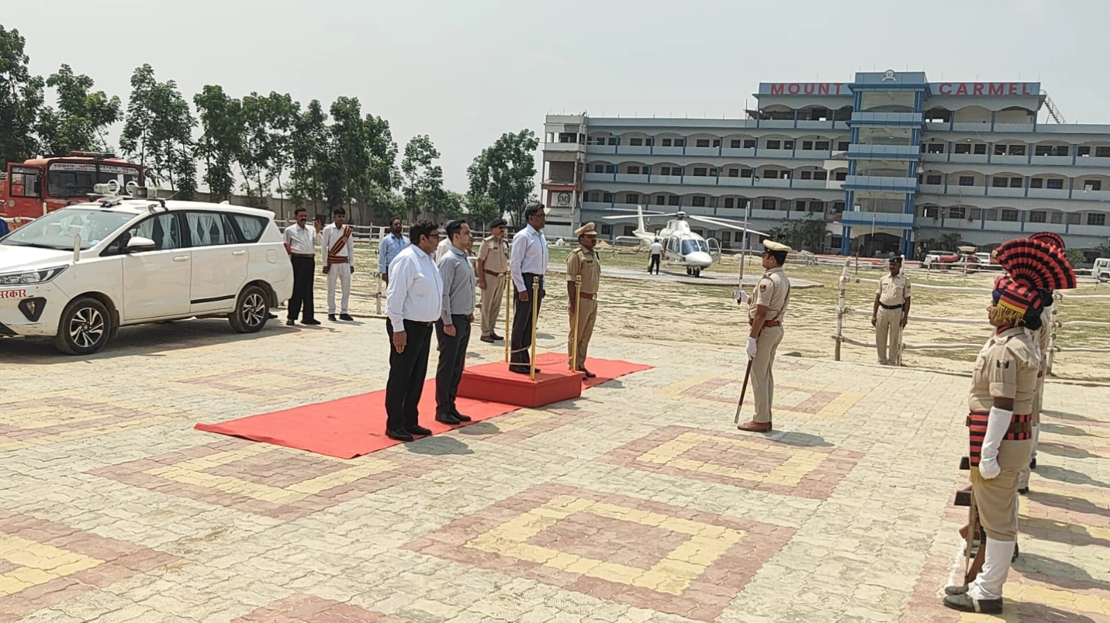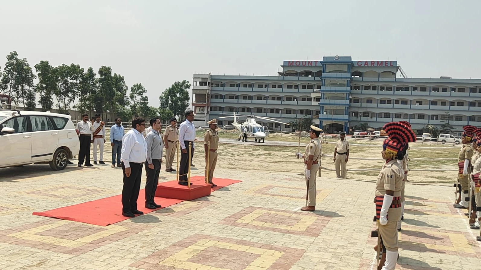 दोनों वरिष्ठ अधिकारी माउंट कारमेल स्कूल परिसर में हेलीकॉप्टर के माध्यम से उतरे, जहां पहले से मौजूद पुलिस और प्रशासनिक अधिकारियों ने उनका स्वागत किया। इस दौरान जवानों ने उन्हें गार्ड ऑफ ऑनर दिया, जिससे पूरे कार्यक्रम की गरिमा और बढ़ गई।