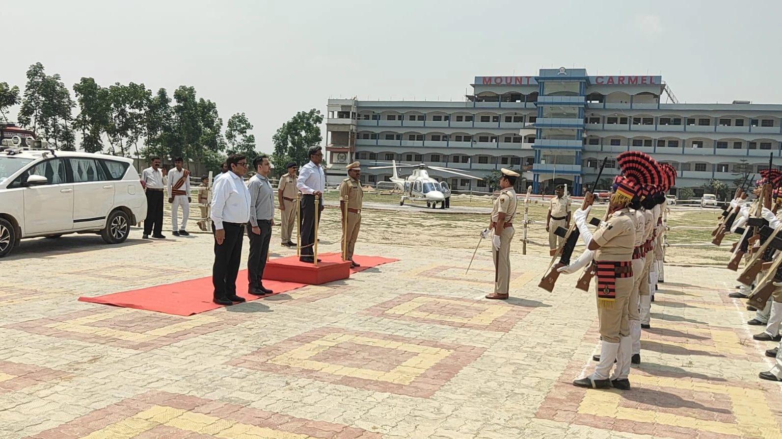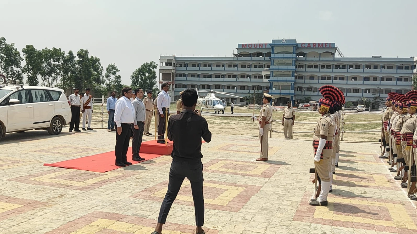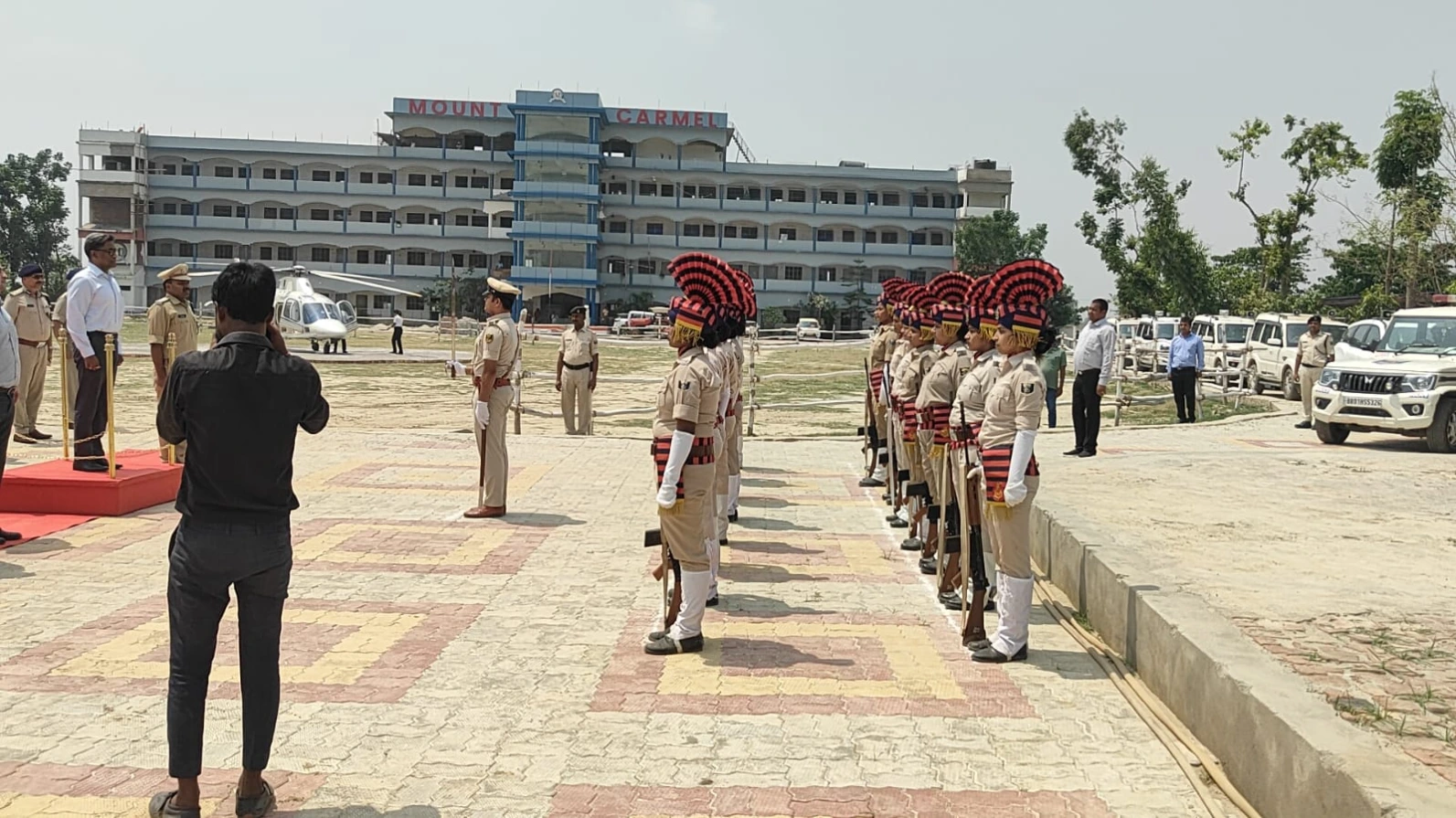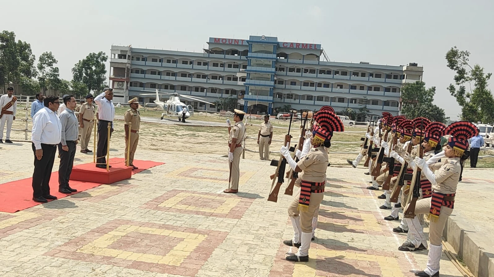 दोनों वरिष्ठ अधिकारी माउंट कारमेल स्कूल परिसर में हेलीकॉप्टर के माध्यम से उतरे, जहां पहले से मौजूद पुलिस और प्रशासनिक अधिकारियों ने उनका स्वागत किया। इस दौरान जवानों ने उन्हें गार्ड ऑफ ऑनर दिया, जिससे पूरे कार्यक्रम की गरिमा और बढ़ गई।