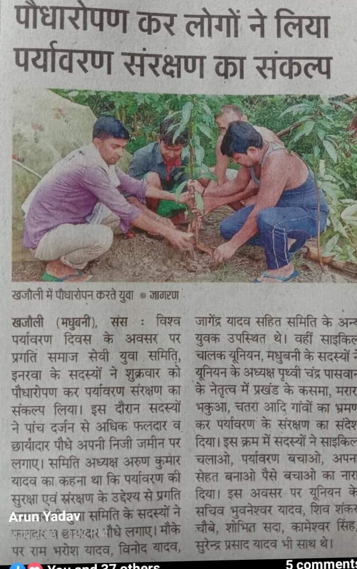 जैसे अनेक विषयों पर ज़मीनी स्तर पर कार्य किया है। समिति द्वारा 5100 पौधे लगाने का संकल्प लिया गया, जिसमें सैकड़ों पौधे सरकारी एवं निजी स्थलों पर लगाए जा चुके हैं।