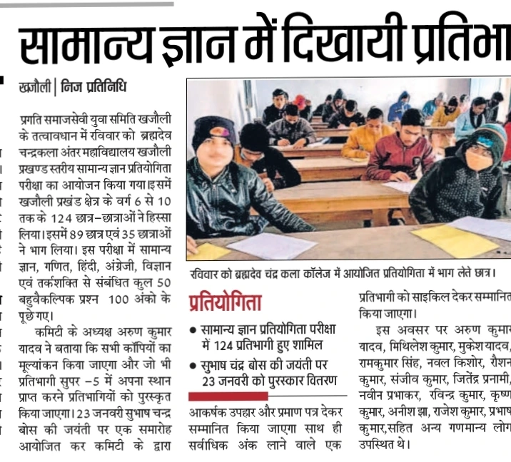 प्रतियोगिता में टॉप-5 छात्रों को 23 जनवरी (सुभाष चंद्र बोस जयंती) पर साइकिल, पुस्तकें और प्रमाण पत्र देकर सम्मानित किया जाता है।