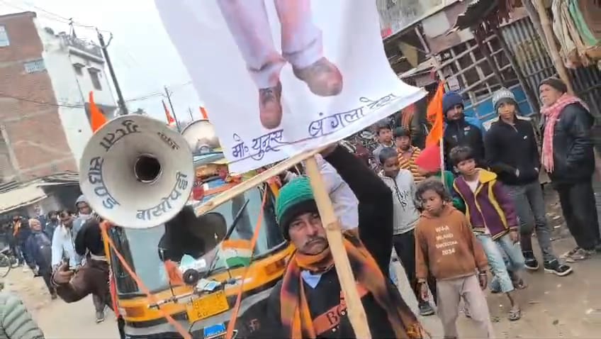 प्रतीकात्मक रूप से प्रधानमंत्री यूनुस का पुतला जलाकर विरोध दर्ज कराया गया
