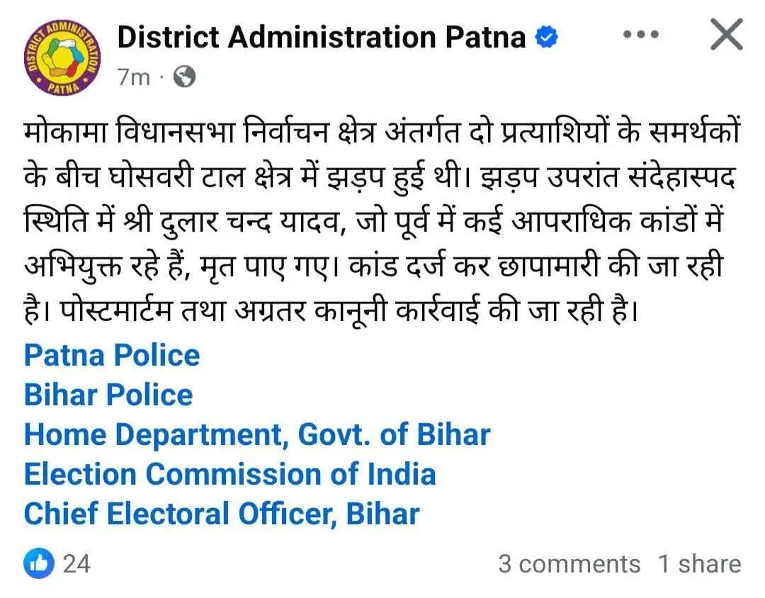 दुलारचंद यादव उस समय RJD के लिए चुनाव प्रचार कर रहे थे।